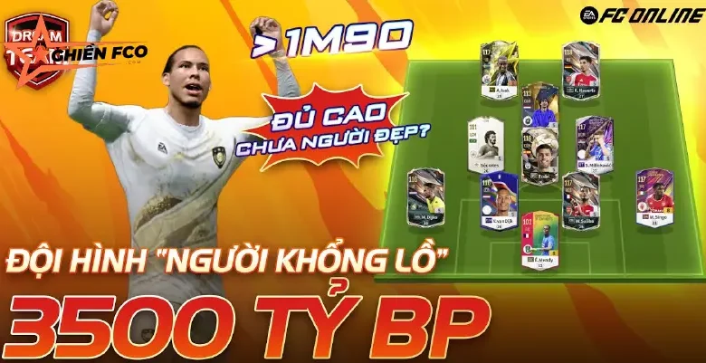 Với đội hình người khổng lồ 3500 tỷ BP, bạn sẽ có một đội bóng mạnh mẽ với chiều cao vượt trội và khả năng tranh chấp thể chất không ai dám đụng vào. Sự kết hợp giữa sức mạnh và kỹ thuật sẽ tạo ra một đội hình hoàn hảo cho mọi trận đấu trong FC Online. Đừng quên thử nghiệm với sơ đồ 41212 và tối ưu hóa chiến thuật để khai thác hết tiềm năng của các cầu thủ này!